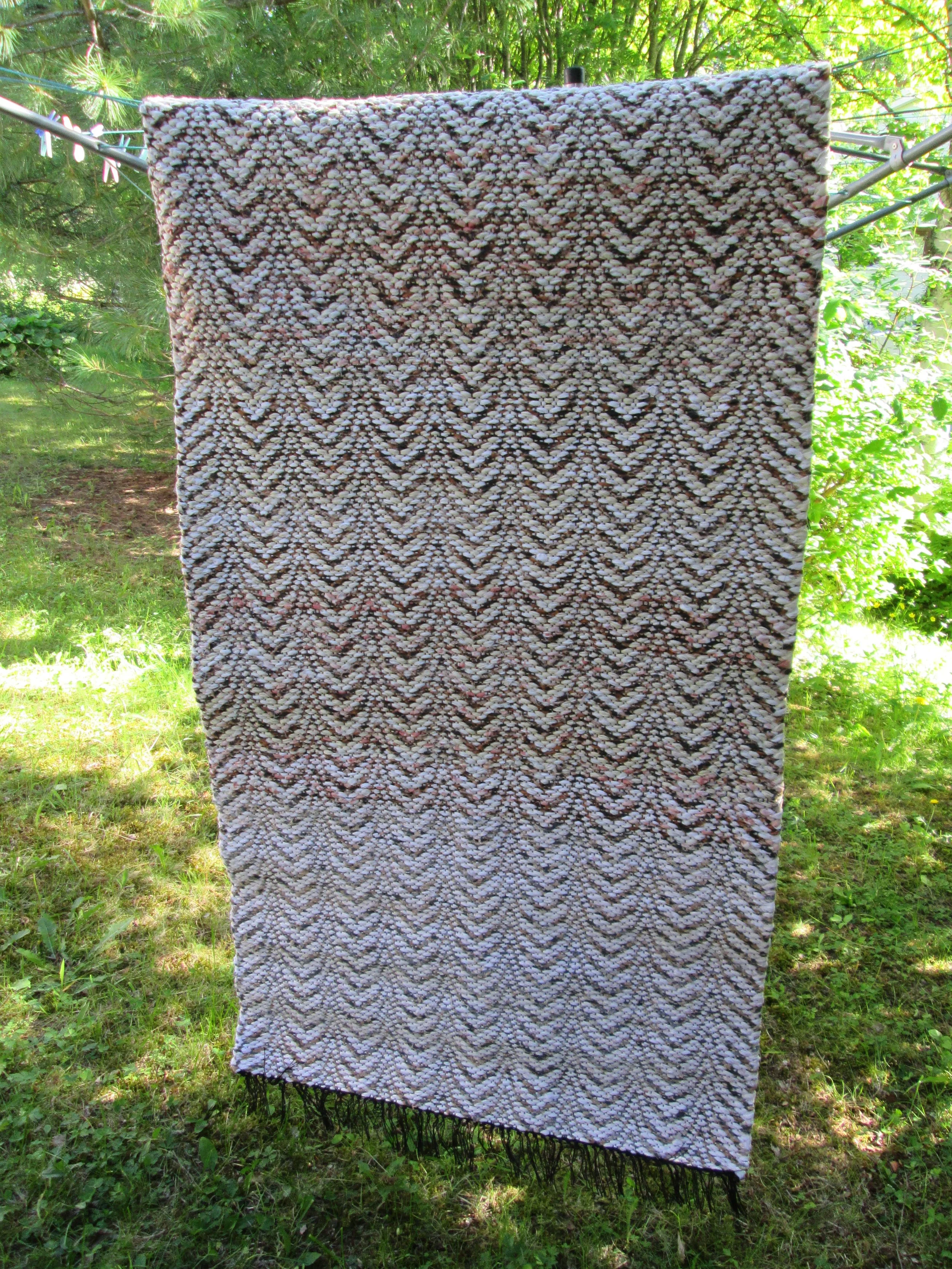 Ripsimatto, hapsut ommeltu kuteiden sisään.