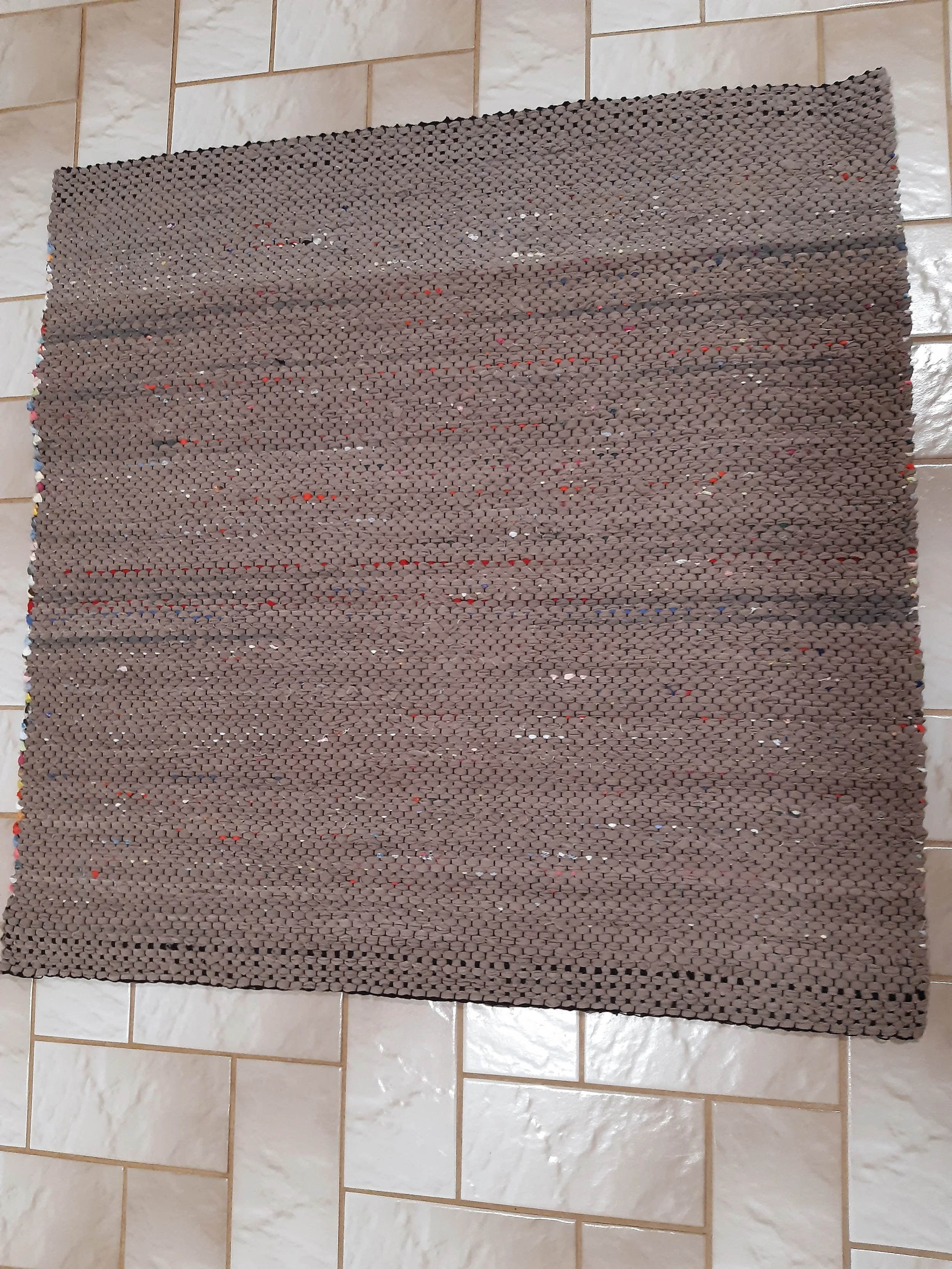 Saori-tekniikalla pujoteltu vessanmatto/kynnysmatto/leikkimökin matto.